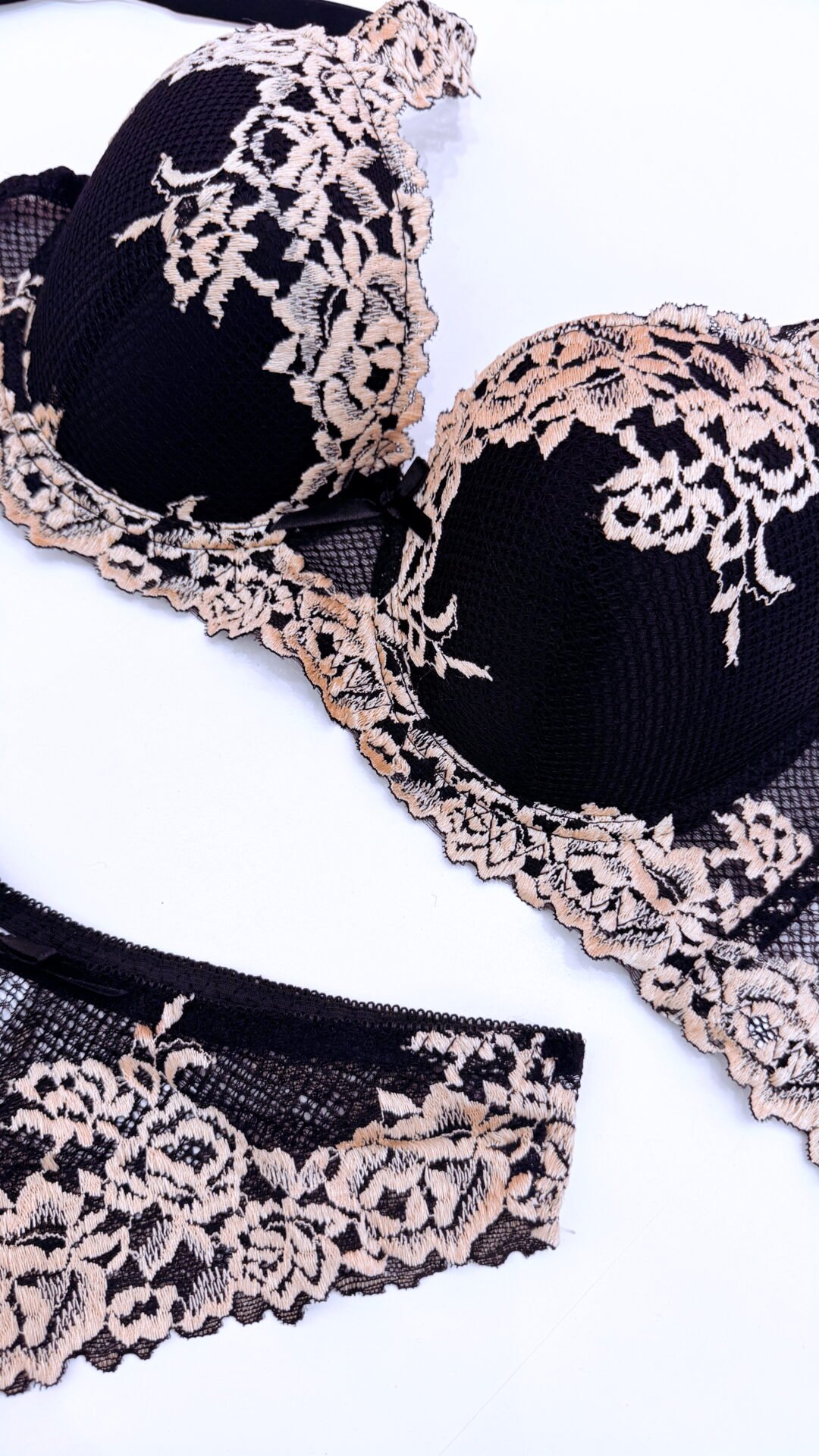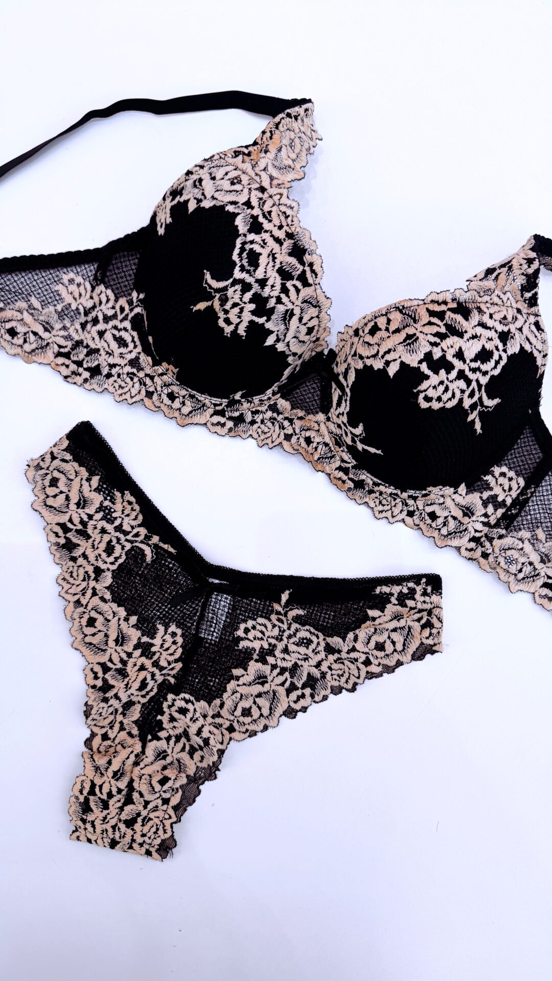 Inspirada na luz suave da lua e no mistério das noites mais intensas, a Lunaire é uma ode à sensualidade feminina em estado puro. Com bordados florais contrastantes, copa reforçada e encaixe perfeito nas curvas, esta lingerie foi criada para mulheres que sabem que o verdadeiro poder está nos detalhes.