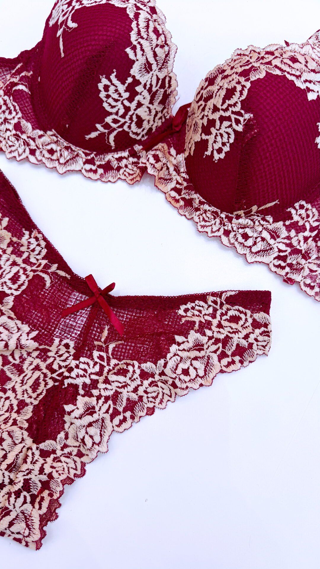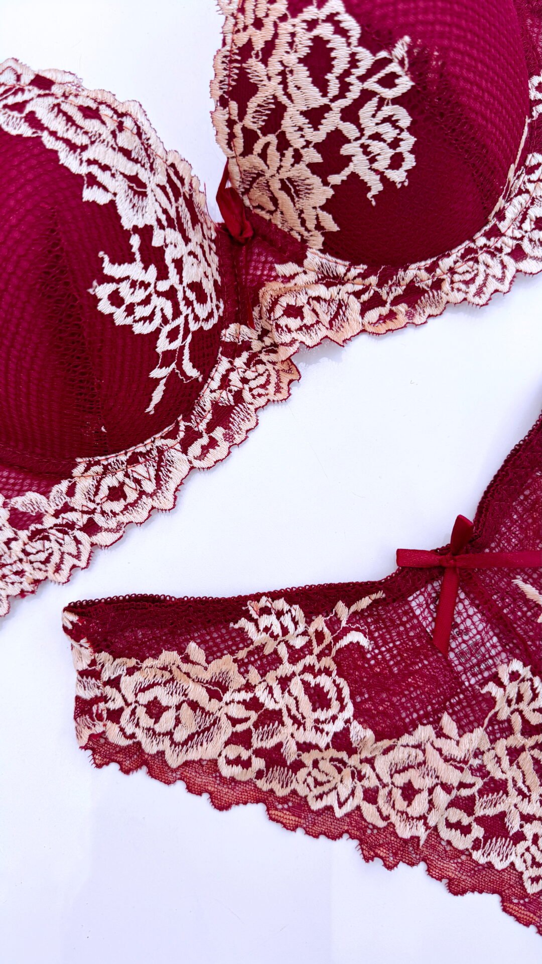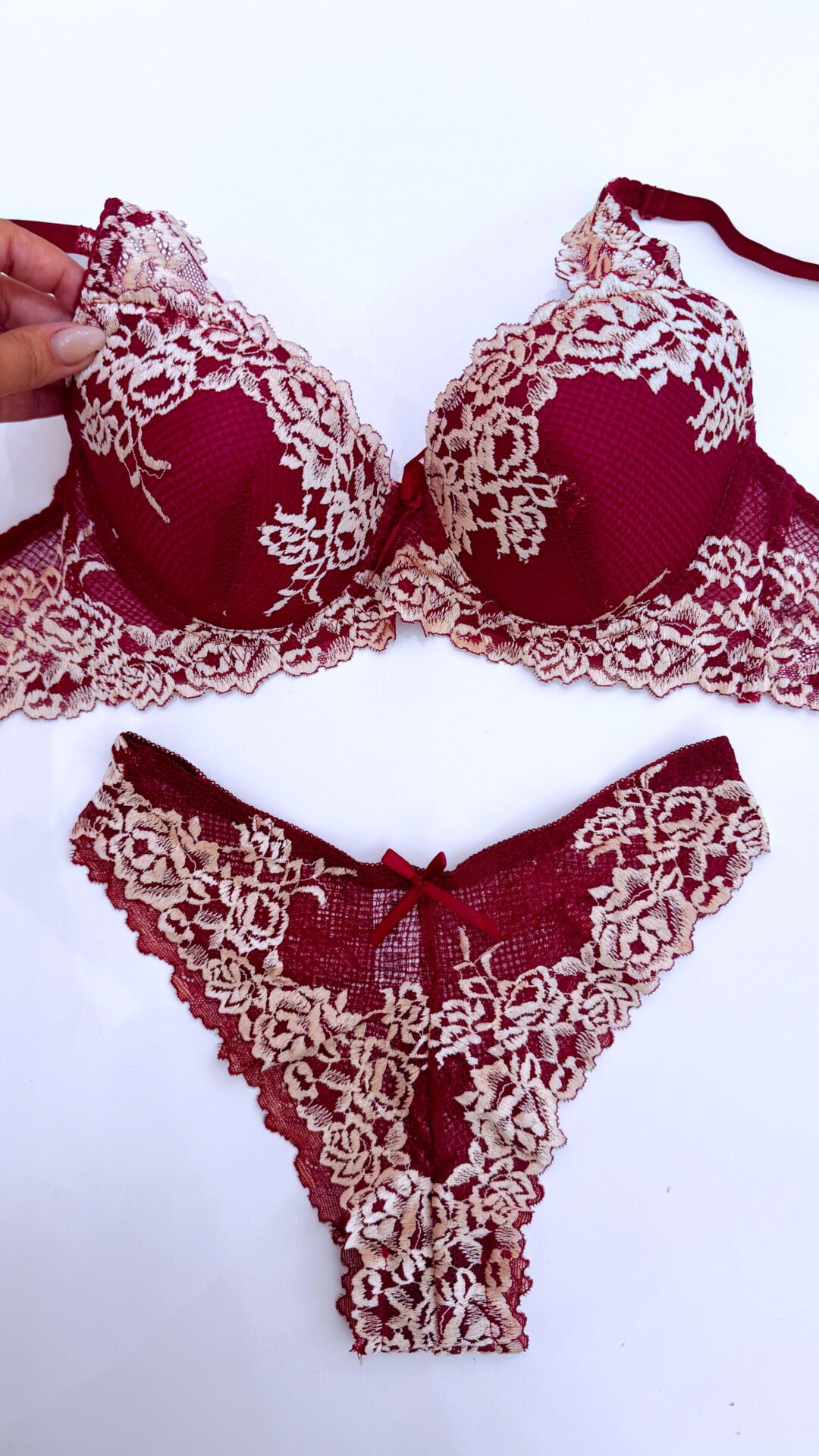 A renda delicada desenha-se sobre a pele como um feitiço. As cores profundas e luxuosas — do vinho ao preto, passando pelo azul noite e pelo rosé encantado — tornam cada conjunto numa afirmação de feminilidade confiante, pronta para ser revelada… ou guardada só para ti.