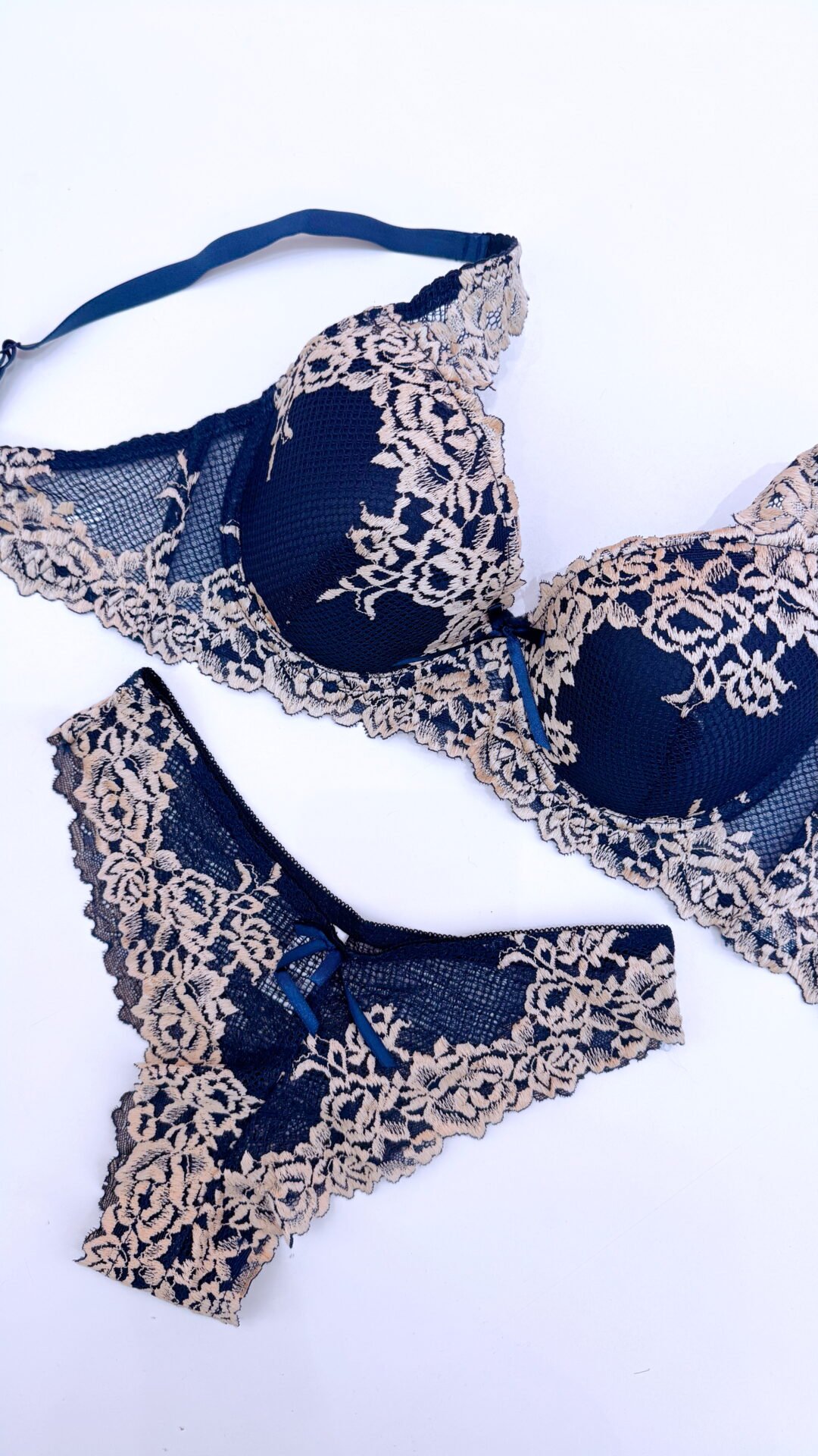 A renda delicada desenha-se sobre a pele como um feitiço. As cores profundas e luxuosas — do vinho ao preto, passando pelo azul noite e pelo rosé encantado — tornam cada conjunto numa afirmação de feminilidade confiante, pronta para ser revelada… ou guardada só para ti.